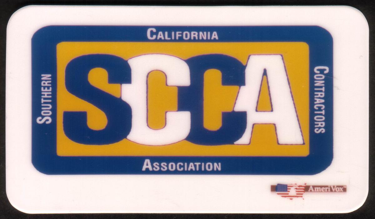The card’s clean design and strong branding convey its purpose clearly. It serves as a collectible item linked to the building industry in Southern California during the early 1990s. The inclusion of both SCCA and AmeriVox names provide firm identification of its origin and theme centered on construction contractors in that region for that year.