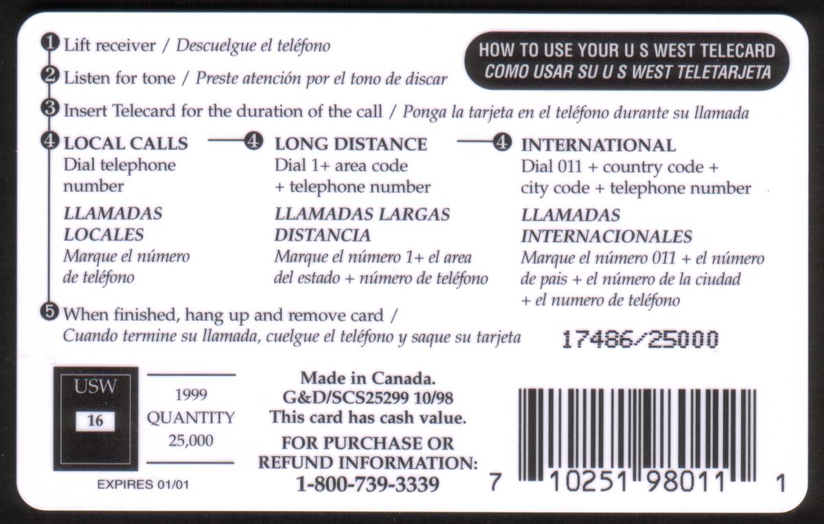 Since we have the world's largest inventory of USA phonecards for collectors, you will not necessarily receive the identical serial/batch/PIN number that we have scanned/pictured.
