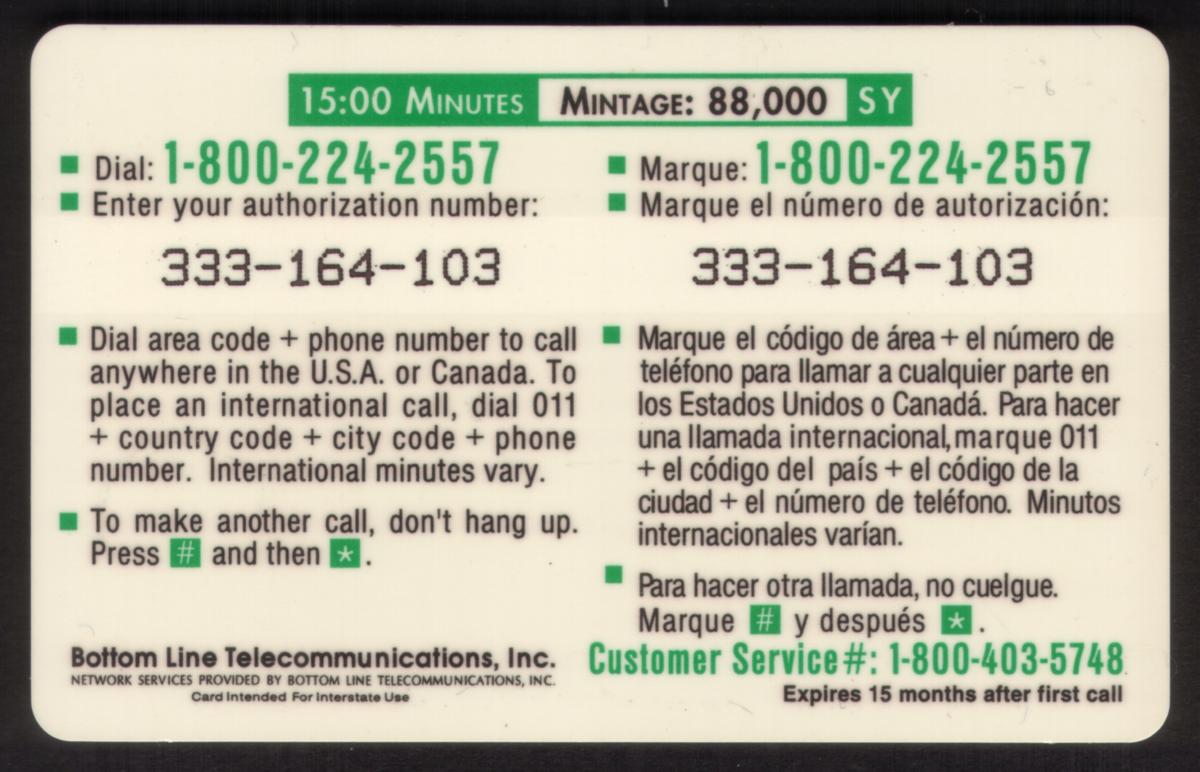Since we have the world's largest inventory of USA phonecards for collectors, you will not necessarily receive the identical serial/batch/PIN number that we have scanned/pictured.
