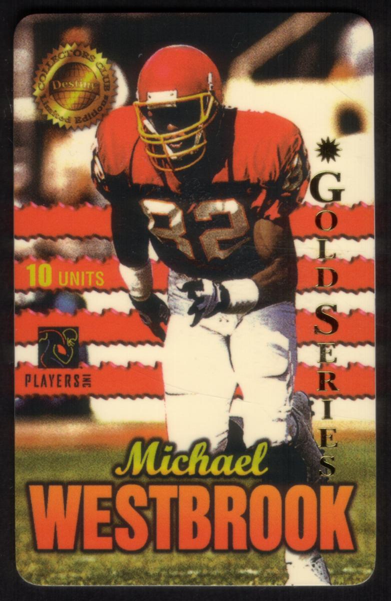 This card is part of a series that celebrates NFL players, emphasizing authenticity and exclusivity through its numbering and use of official league branding. Its collectible nature is evidenced by the limited edition status and clear reference to Michael Westbrook’s position and team, making it a distinct item for football memorabilia collectors.