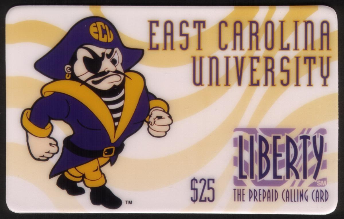 This promotional collectible card highlights the university’s branding with the mascot “Pee Dee the Pirate” or “Pete,” associated with East Carolina University in Greenville. The card is designed as a promotional collectible, showcasing education and university emblems related to East Carolina University.