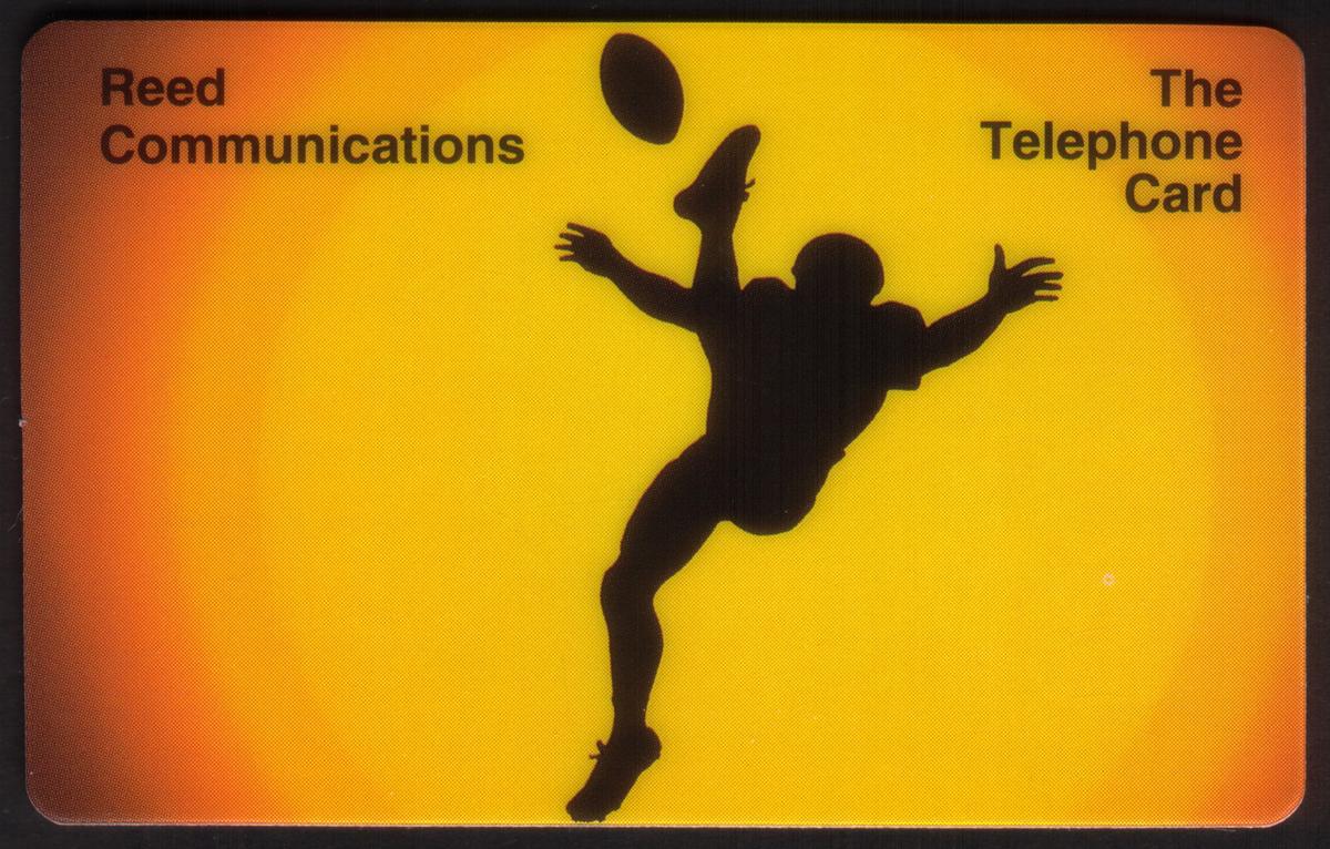 This card is associated with football as a sport and is issued by WorldLink Communications. The straightforward layout emphasizes the football kicker silhouette and the textual elements, making it a distinct collectible related to American football and issued by Reed Communications through WorldLink.