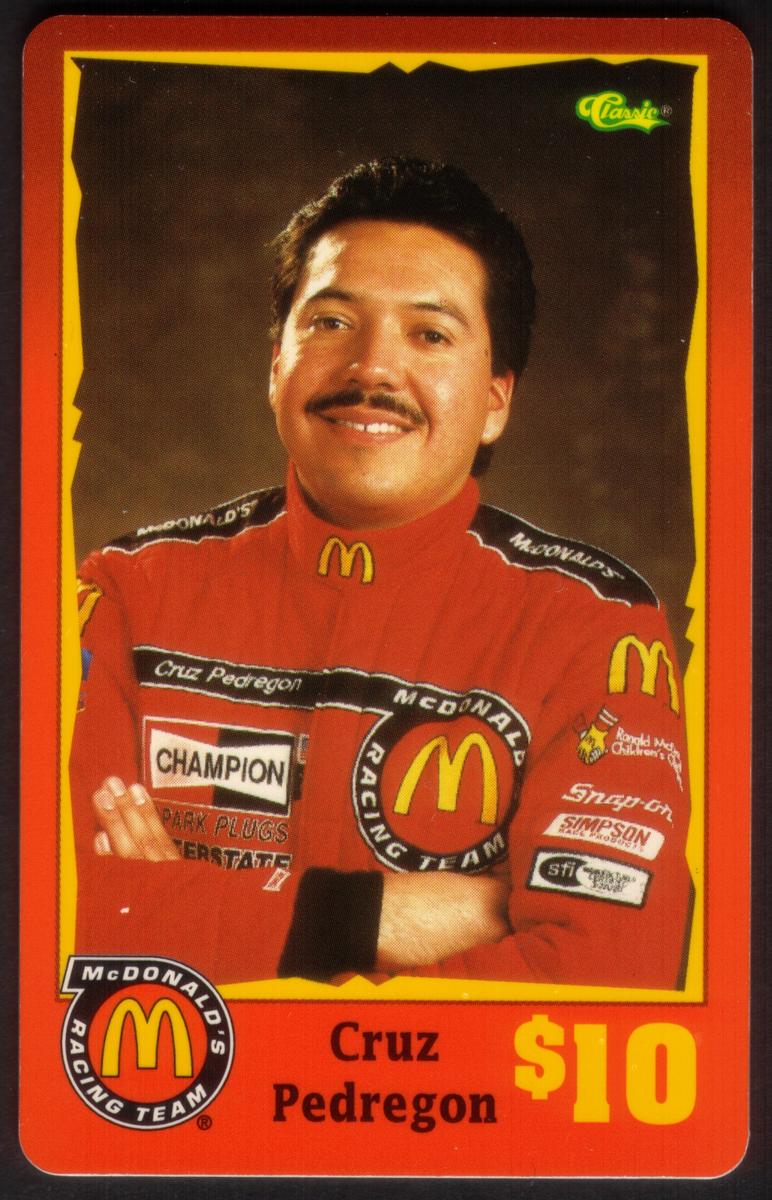 Overall, this card celebrates Cruz Pedregon’s involvement in racing alongside McDonald's, capturing the energy of the sport and the era. It is a collectible item designed for fans of auto racing and McDonald's promotional memorabilia from the mid-1990s.