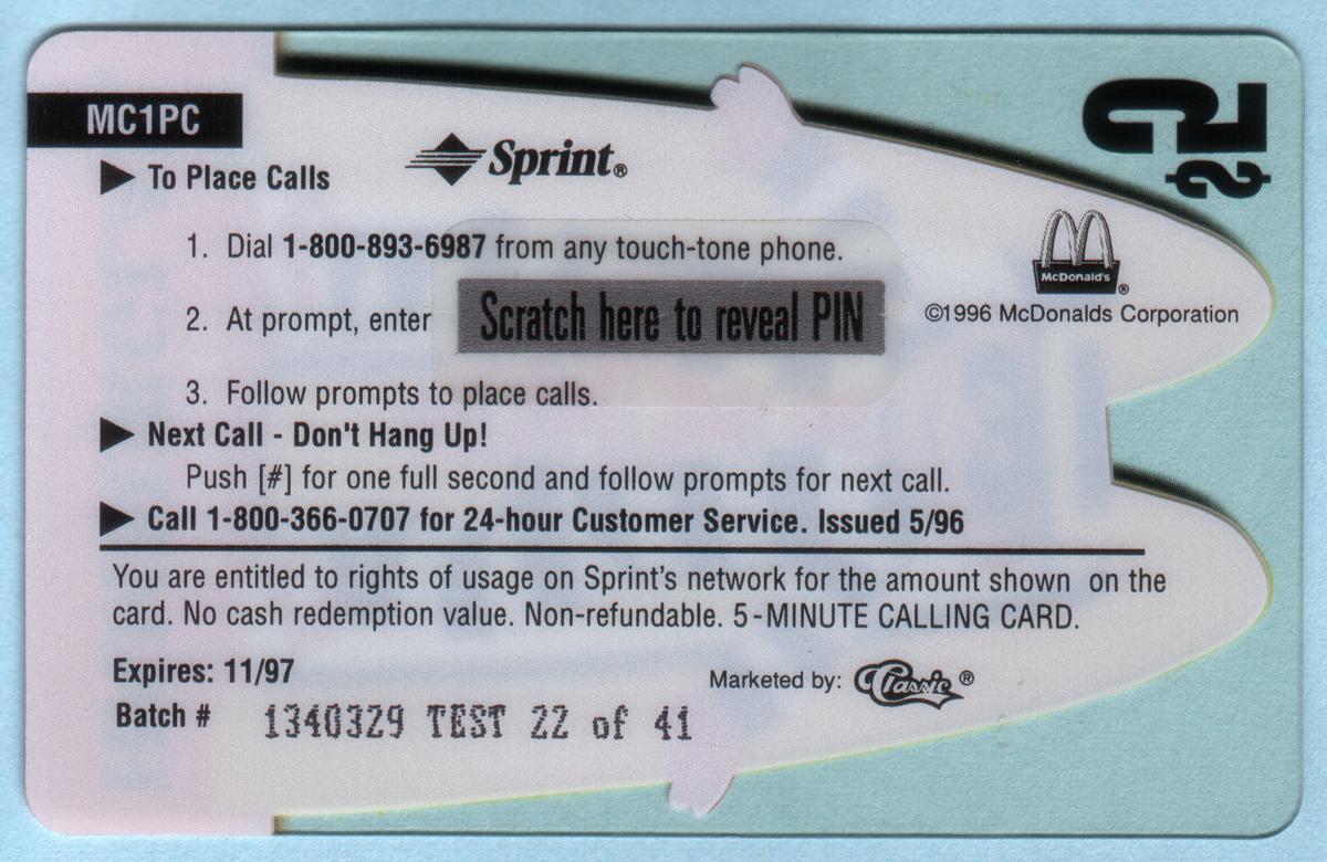 Since we have the world's largest inventory of USA phonecards for collectors, you will not necessarily receive the identical serial/batch/PIN number that we have scanned/pictured.