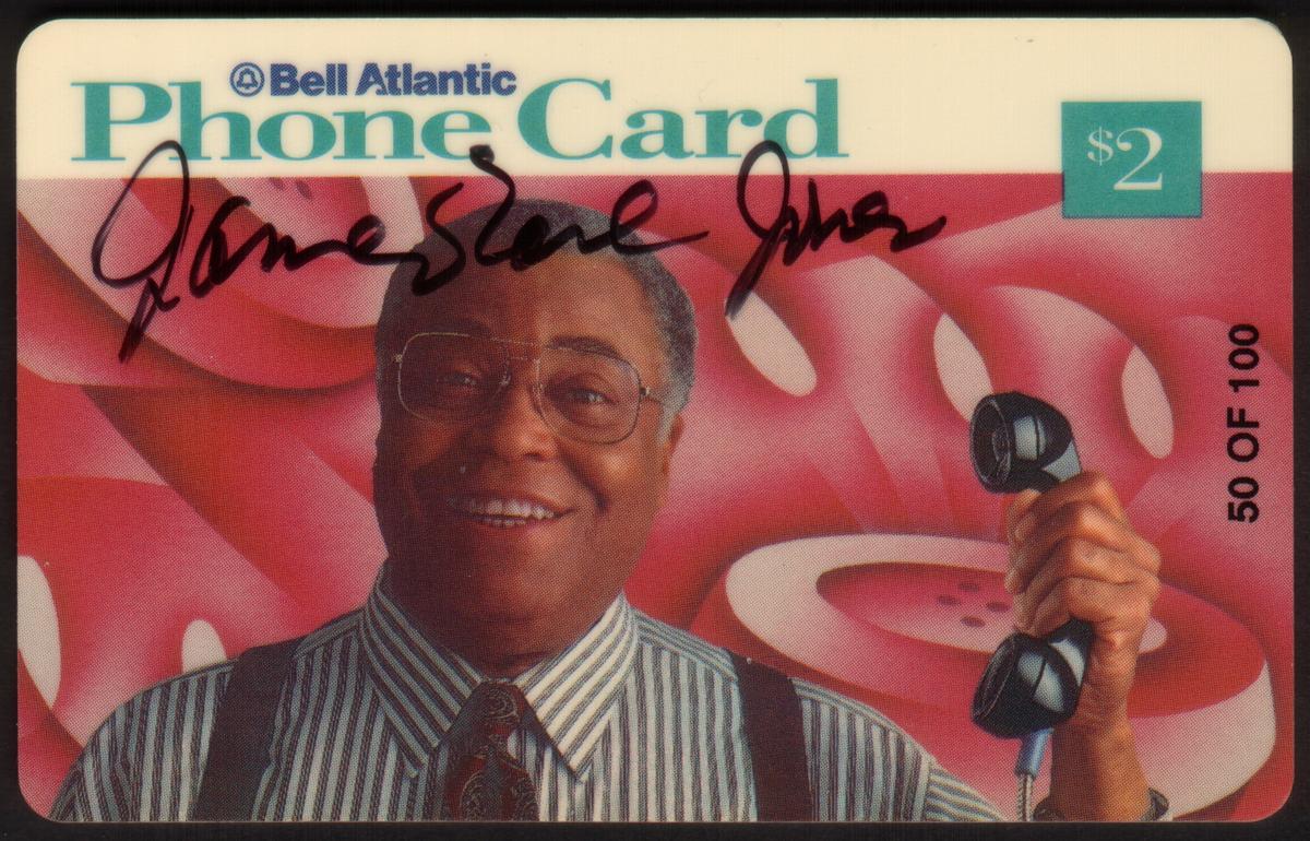 James Earl Jones portrait on a Bell Atlantic phone card, featuring his signature, limited edition of 100, celebrating his iconic voice and acting legacy. |