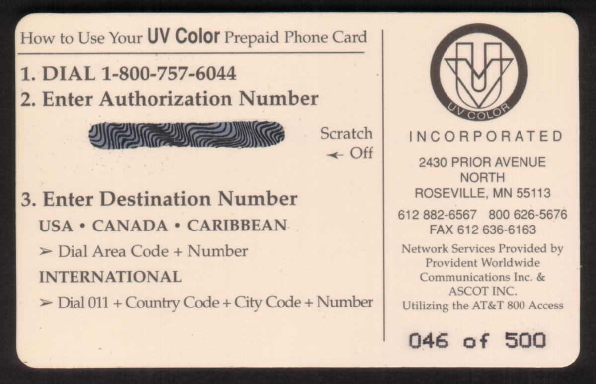 Since we have the world's largest inventory of USA phonecards for collectors, you will not necessarily receive the identical serial/batch/PIN number that we have scanned/pictured.