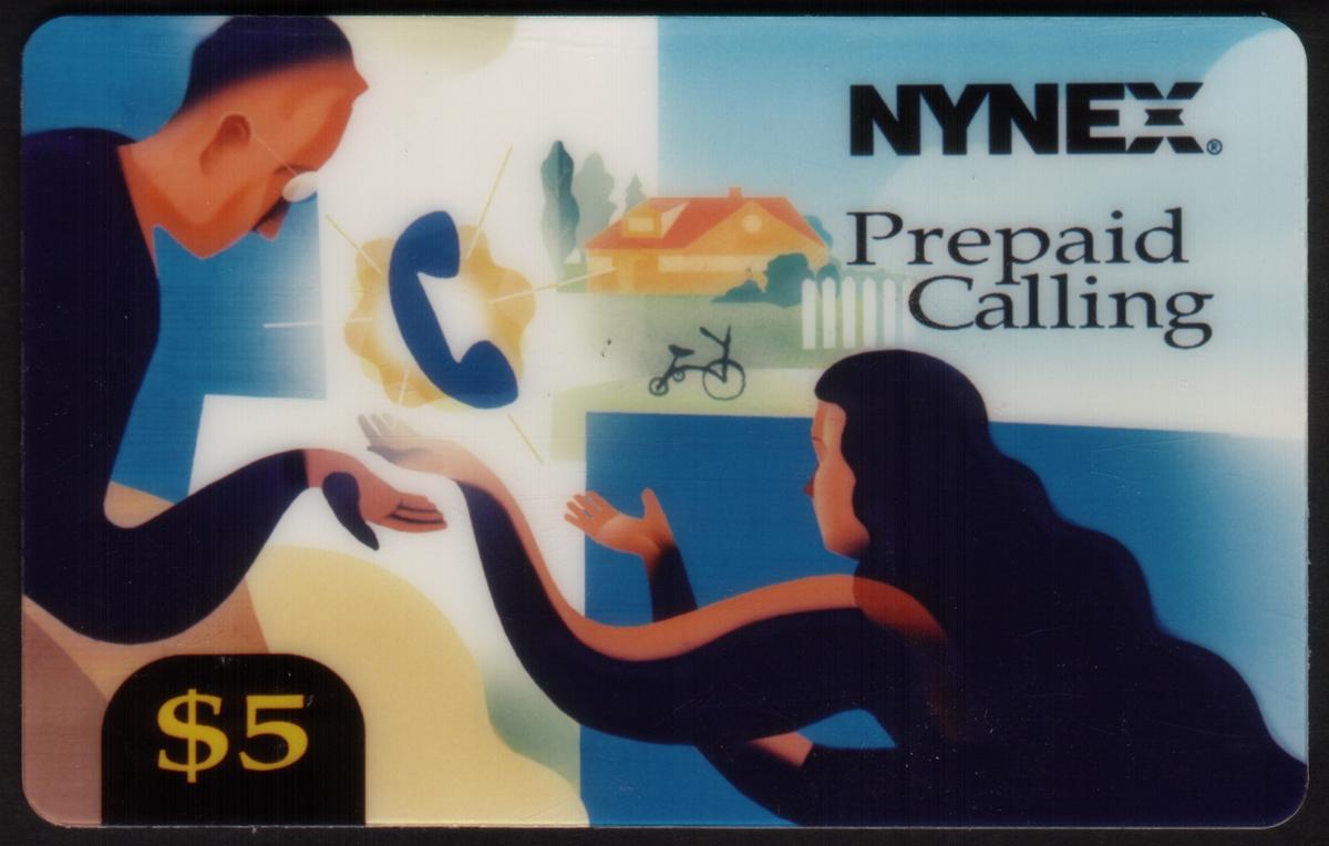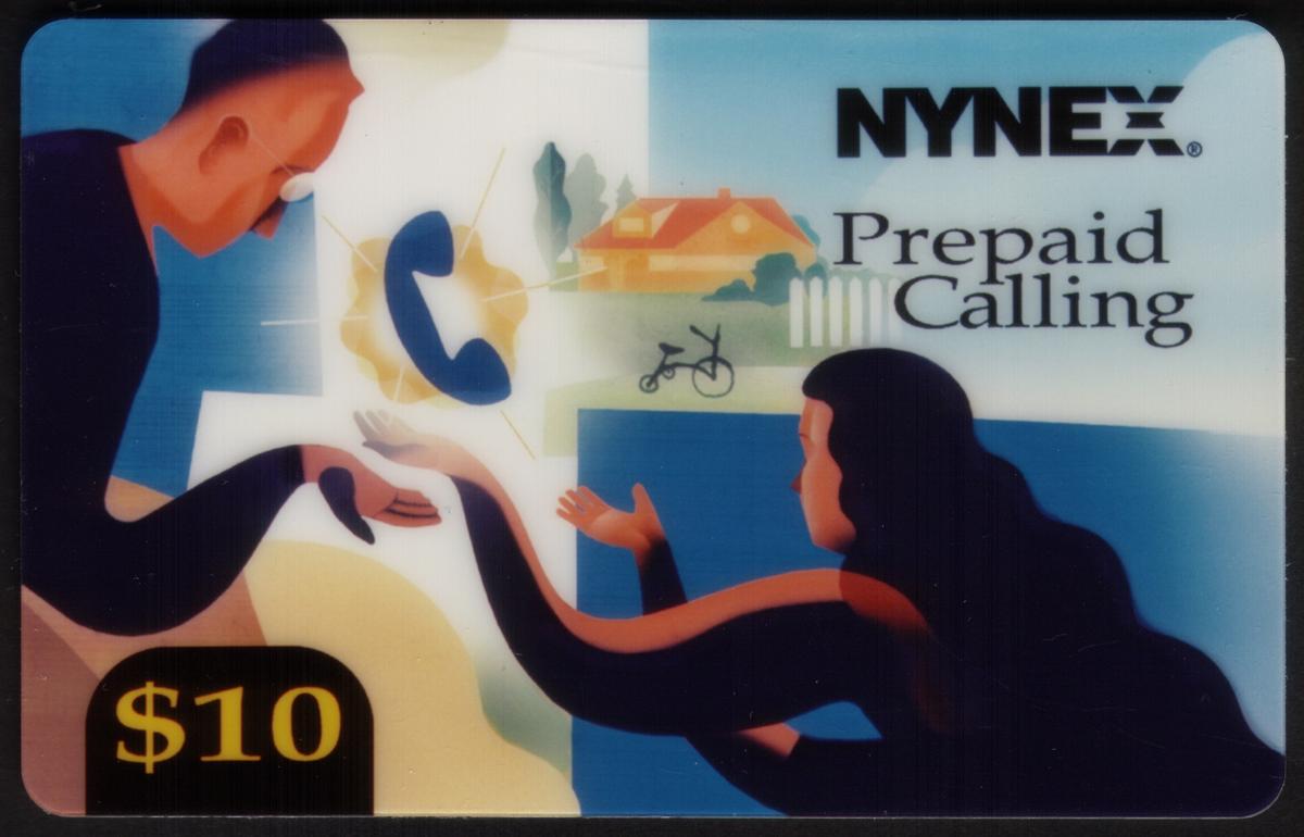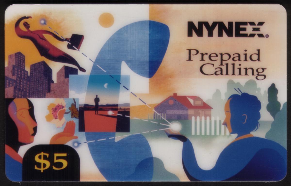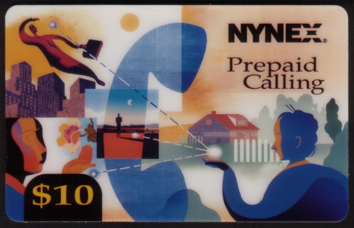 Modern art-inspired NYNEX prepaid calling cards featuring abstract and figurative designs of telephony, human connection, cityscapes, and everyday life from the 1990s. |