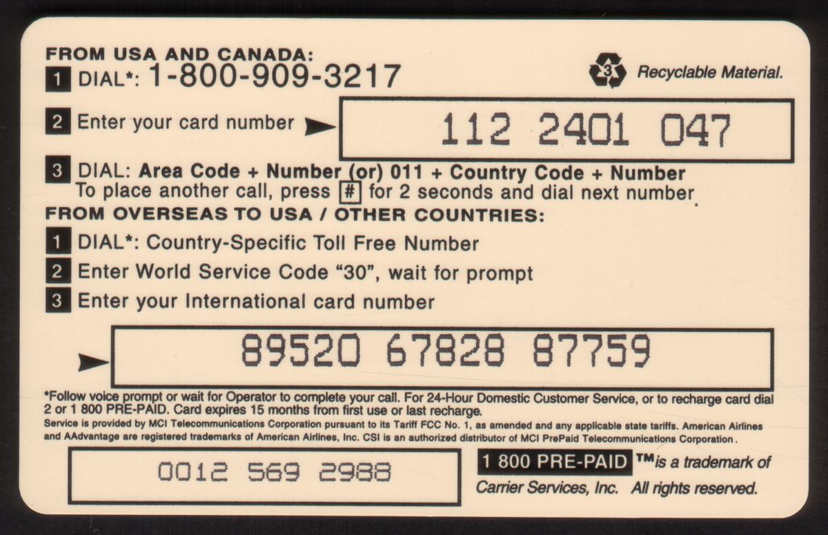 Since we have the world's largest inventory of USA phonecards for collectors, you will not necessarily receive the identical serial/batch/PIN number that we have scanned/pictured.