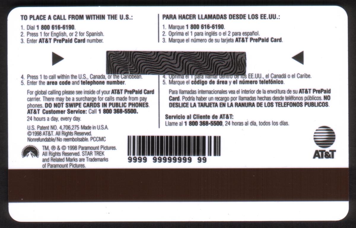 Produced during 1998, these AT&T phone cards reflect both a collectible and functional aspect, combining stored value with magnetic stripe technology. They are officially licensed by Paramount Pictures, tying them directly to the film’s release and broader Star Trek media presence.