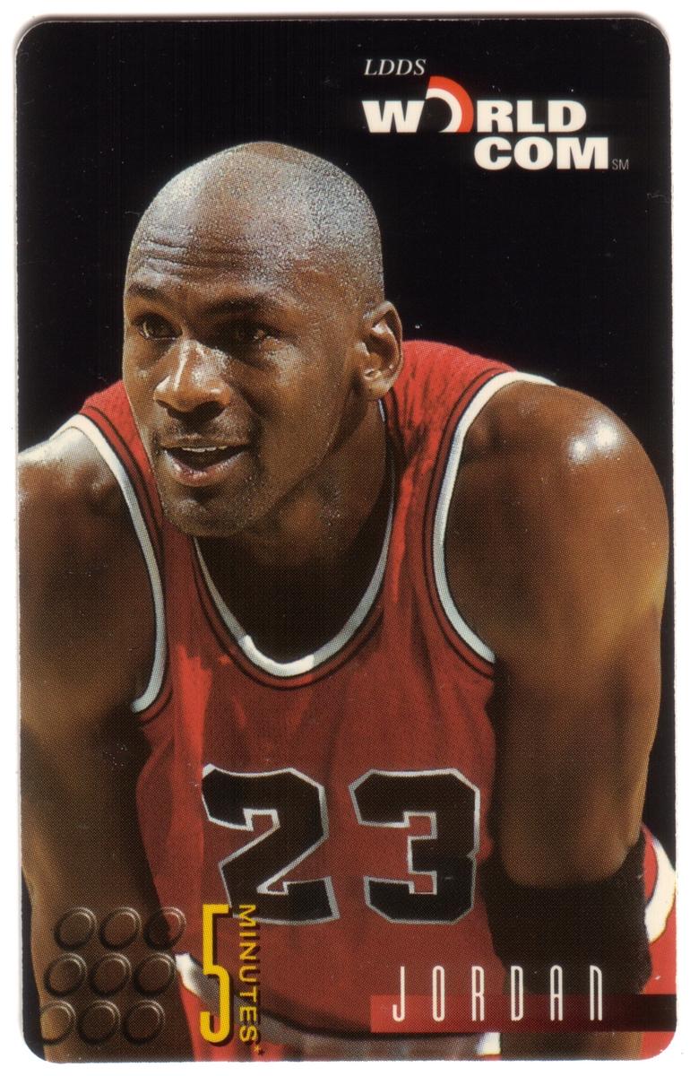 This card is collectible and linked to the WorldCom brand. It visually commemorates Michael Jordan’s connection with basketball and the significance of the first Jordan card released by LDDS, making it a notable piece for collectors interested in basketball memorabilia and sports history.