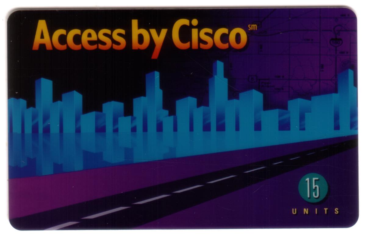 In the bottom right corner, a green circular emblem contains the number "15" in white, with the word "UNITS" written below it in small yellow letters. The card design includes subtle technical or circuit-like line patterns, particularly noticeable in the upper right area, adding a high-tech feel in line with Cisco Systems’ branding.