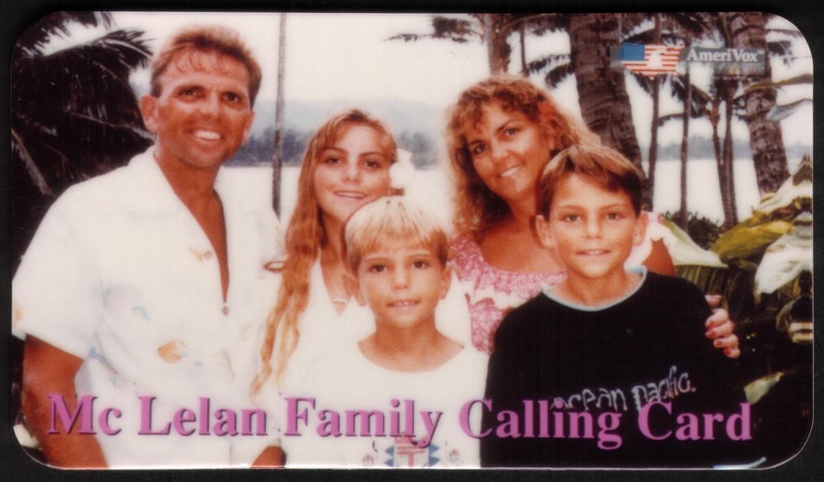This phone card captures a warm, tropical vacation scene reflecting a happy family moment featuring Mike McLelan and his family. The card is part of AmeriVox’s collection of phone cards.