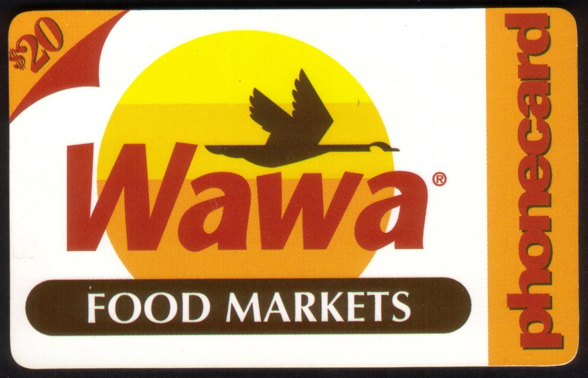 This collectible promotional phone card features the logo of Wawa Food Markets prominently positioned on the right side of the card. The Wawa logo displays its distinctive goose emblem and red lettering. The background of the card shows a stylized blue globe grid representing network connections spanning the world, emphasizing global communications.
