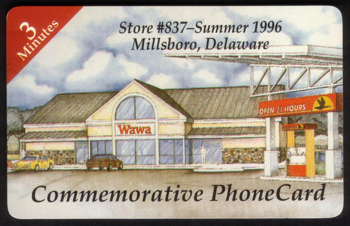 Overall, the card combines commercial elements with telecom service branding, making it a collectible item that links the Wawa Food Market in Millsboro with worldwide telecommunications access through the Access Telecom ASC network.