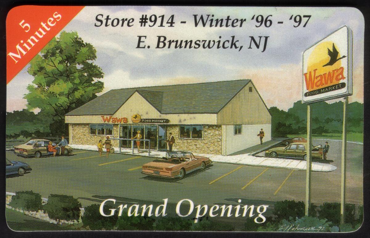 Overall, the card serves as a memento connecting the telecommunications industry with the retail expansion of Wawa Food Market in East Brunswick, New Jersey. The combination of corporate logos and event information establishes its significance as a collectible item tied to this specific date and place in the history of networks around the world.