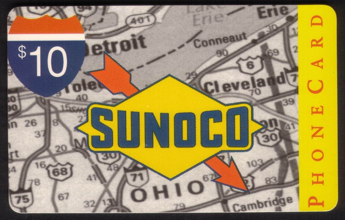 This collectible phone card is associated with networks that facilitate telecommunications across various regions and highlights the Sunoco oil company’s role in connection with telecom services in Ohio and Michigan. The detailed incorporation of the Sunoco logo along with references to both local and global telecommunications networks makes this card a distinct piece representing cooperation between a major oil company and telecommunication access.
