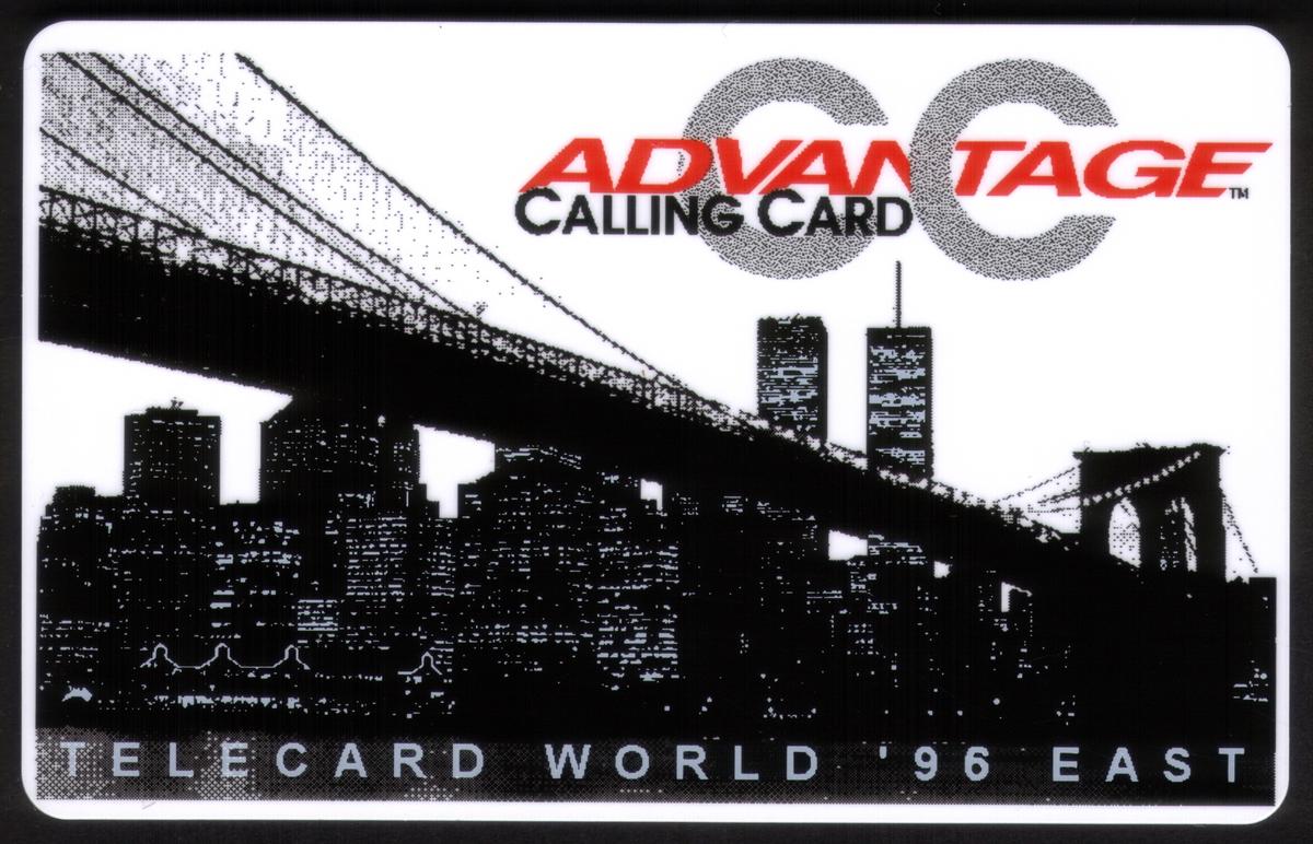 Overall, the card serves as both a functional 20-minute calling card and a collectible item commemorating New York City’s skyline with the World Trade Center towers and a notable bridge, capturing a historic moment in urban architecture and global communication during the mid-1990s.