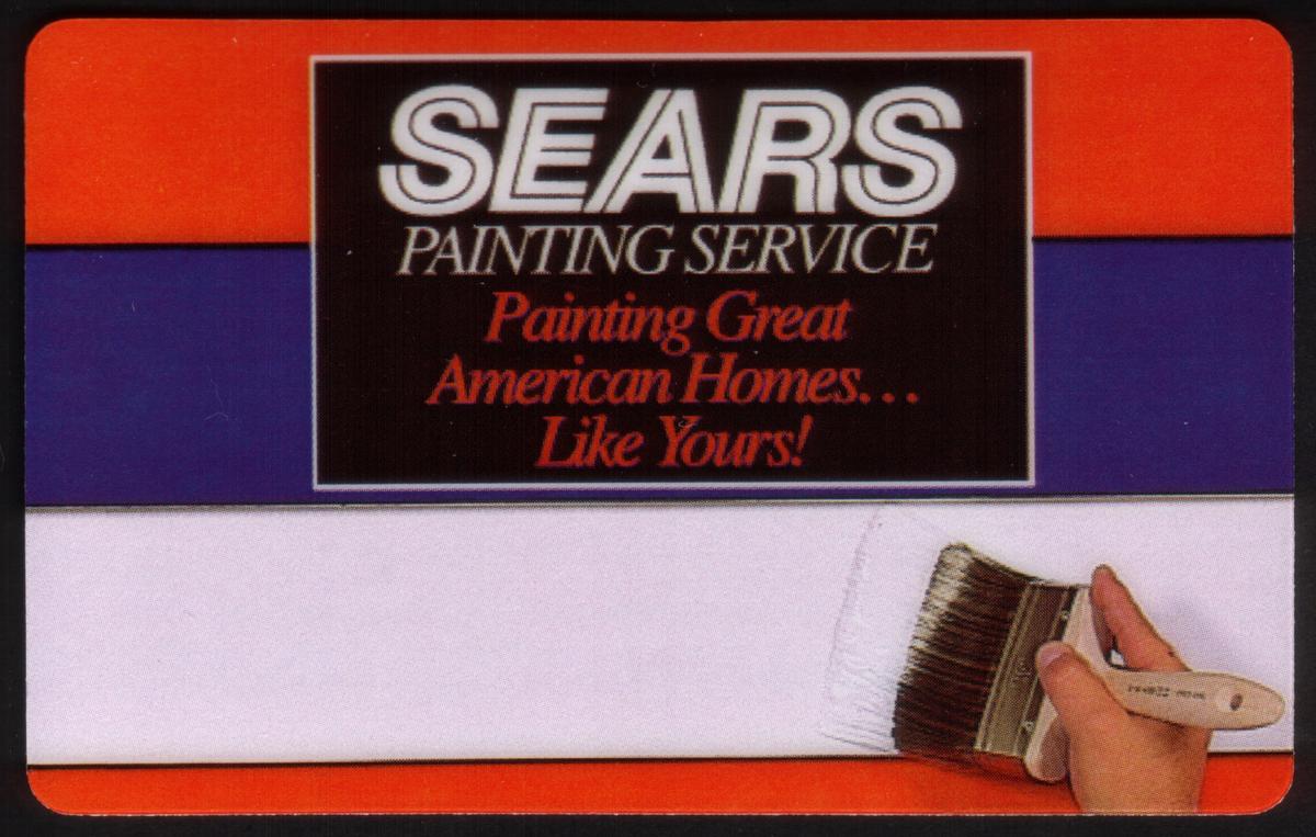 This collectible card features the branding of Sears Roebuck & Co., prominently highlighting the company’s “Painting Great American Homes … like yours!” service. The card is designed to represent a 10-minute Sears Painting Service, emphasizing the company’s commitment to home improvement and residential painting. The card’s design incorporates the Sears name along with the tagline to convey the focus on enhancing American homes.