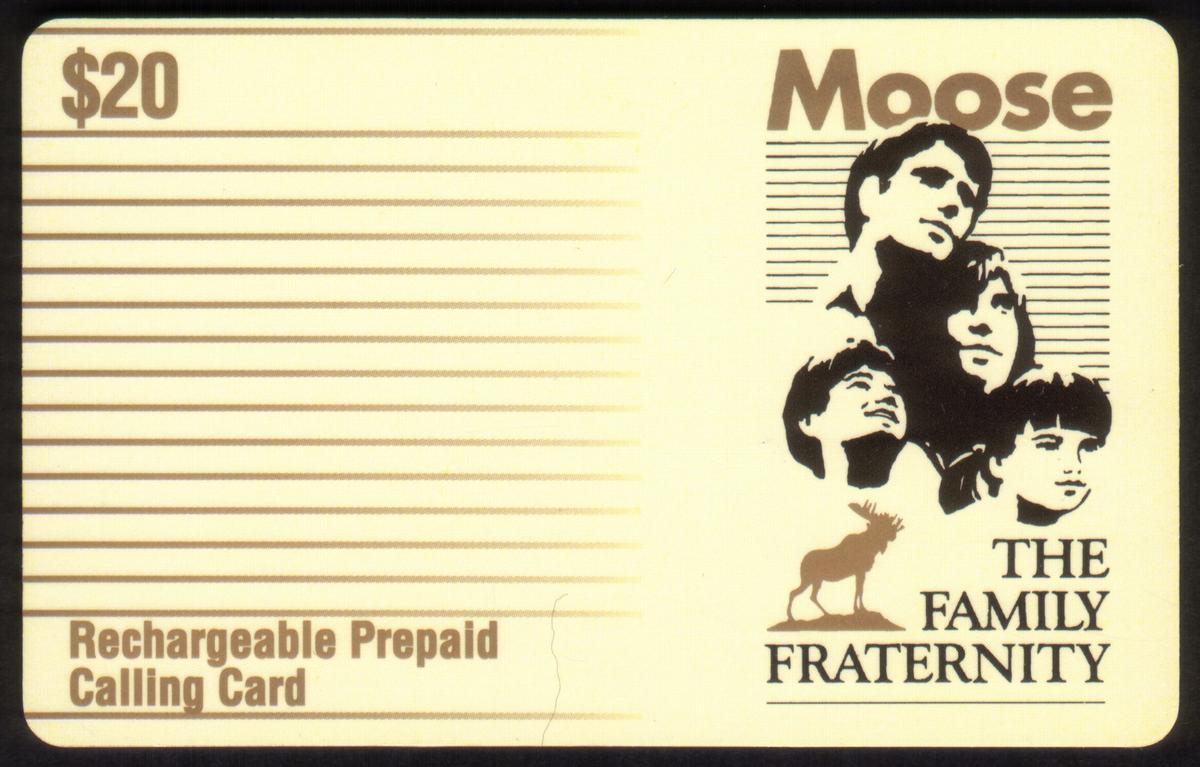 This collectible phone card features imagery related to Moose International, specifically highlighting the Loyal Order of Moose. The card includes references to Moosehaven, known as the City of Contentment, located in Orange Park, Florida, as well as Mooseheart, a child city and school in Chicago, Illinois. The card displays official Moose logos and emblems, symbolizing the organization’s connection to service and fraternity.