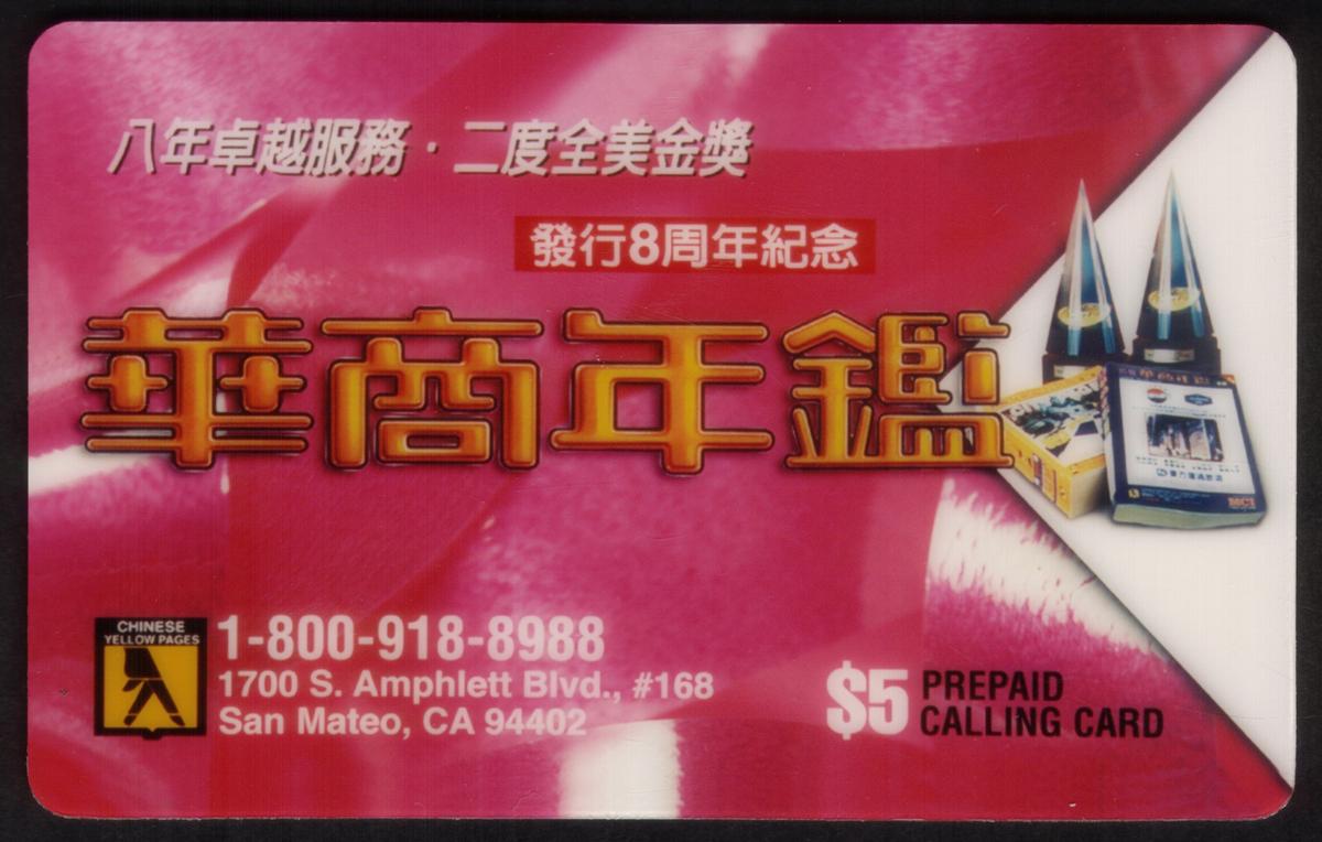 The card is related to telephone directory and telephone information services, specifically catering to the Chinese-speaking community in the San Mateo area. It emphasizes local business listings and contact information for the region. The design is clean and functional, focusing on the informational purpose of the card.