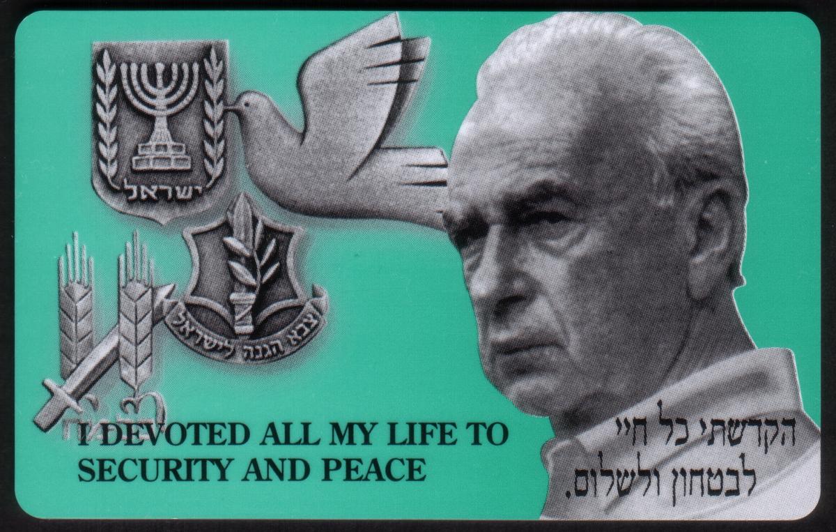 Keywords: judiasm, religious, politicians, prime minister of israel, courtesy israel government coins and medals, portrait by amir weinberg, i devoted all my life to security and peace, nobel peace prize, assassinated, zionist, peace dove, religion, Cable & Wireless (CWI)