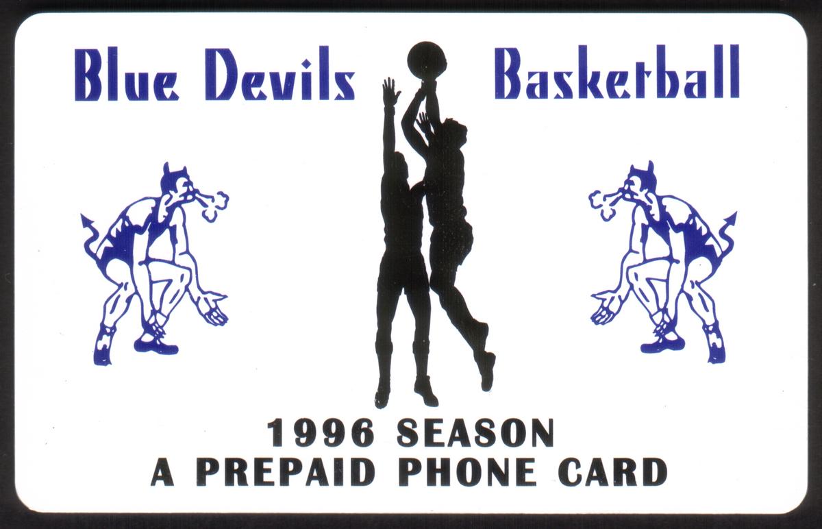 This card is a collectible item connected to basketball and the Blue Devils team, dated to 1996, reflecting both the sport and the time period it represents. It is part of Cable & Wireless’s array of phone cards, bearing a $10 denomination for use within the telecommunications network.