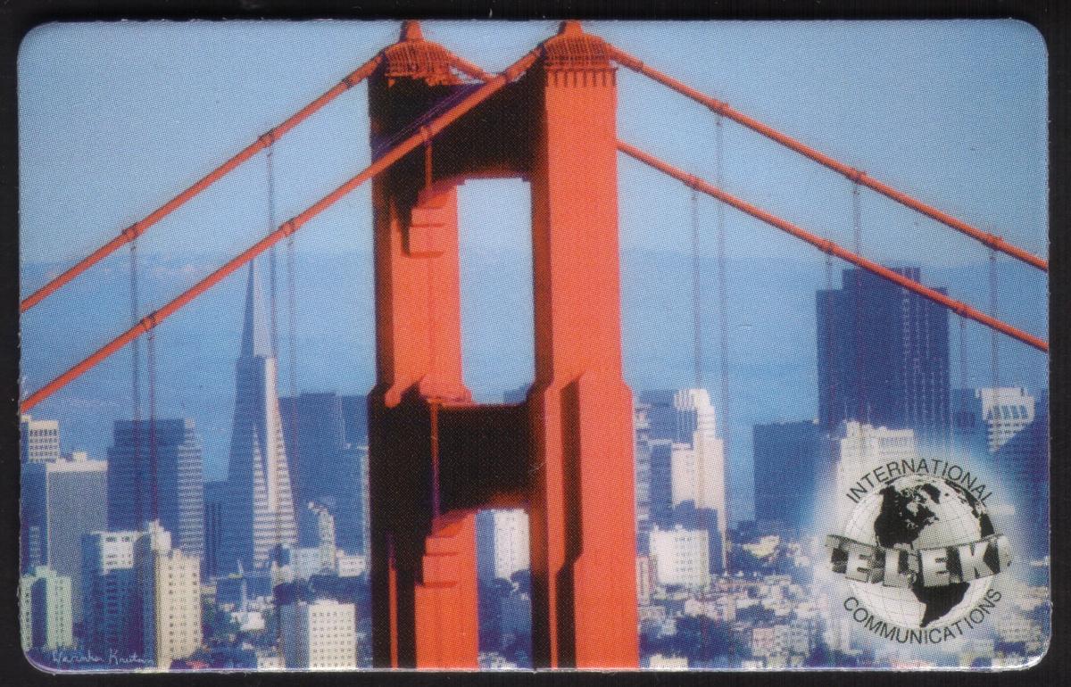 The card has a blue and silver color scheme in its layout, with a strong emphasis on the photograph. The design combines photographic imagery with clear corporate branding, making it both a collectible item and a representation of telecommunications service. The card’s presentation focuses on San Francisco's Golden Gate Bridge as the central visual element.