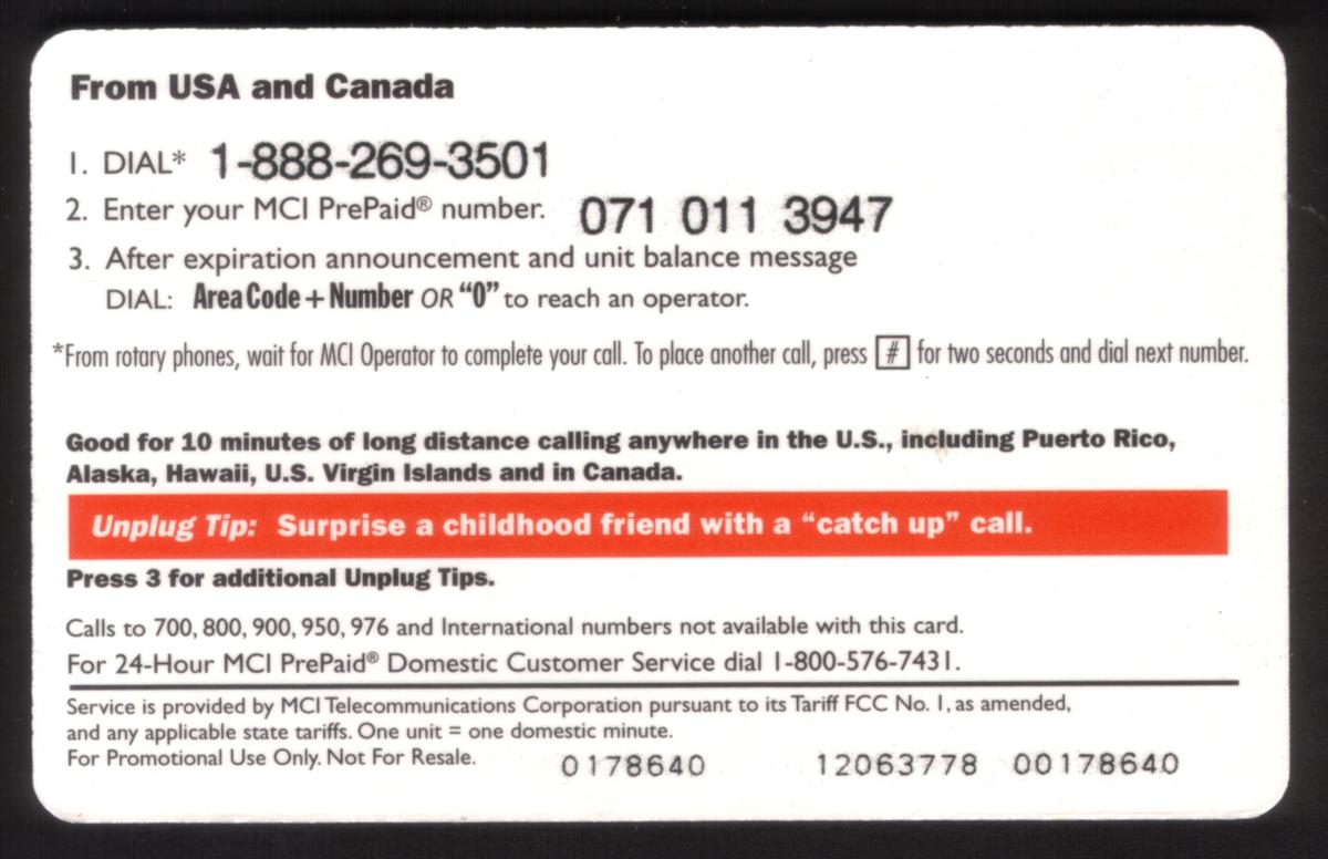 Since we have the world's largest inventory of USA phonecards for collectors, you will not necessarily receive the identical serial/batch/PIN number that we have scanned/pictured.