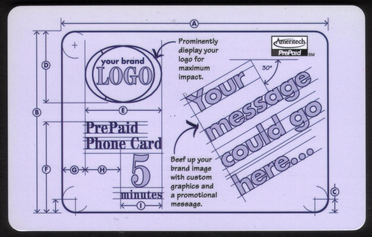 No other logos, characters, or imagery are present on the card front. The design focuses on brand reinforcement through clear typography and the blueprint graphic style, making it a visually distinctive collectible phone card associated with Ameritech’s prepaid calling service.