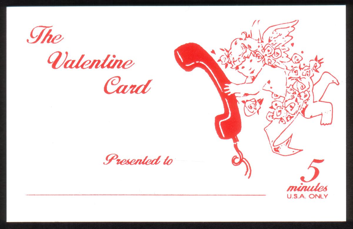 This collectible is titled "The Valentine Card" and aligns closely with themes of holidays, romance, and Valentine's sentiments. The combination of the cherub with a telephone handset and the presence of "Global Tel. Solutions" frames it distinctly within the context of romantic communication and holiday celebration.