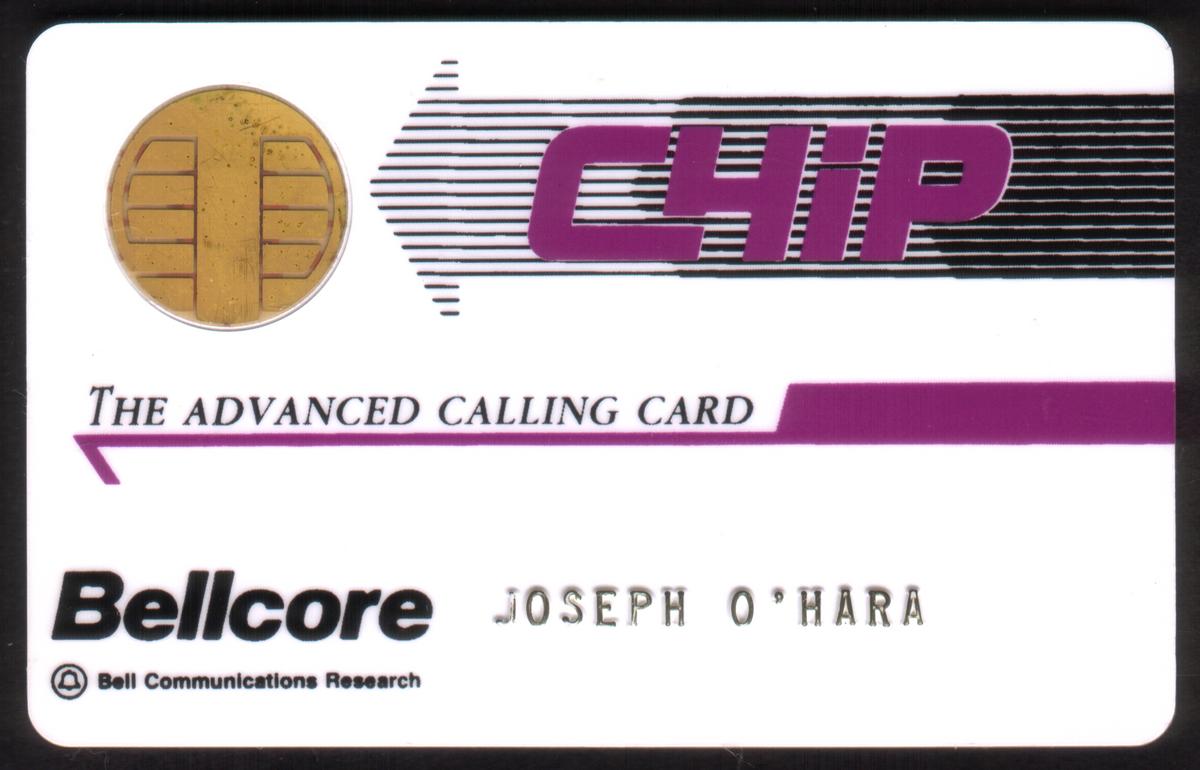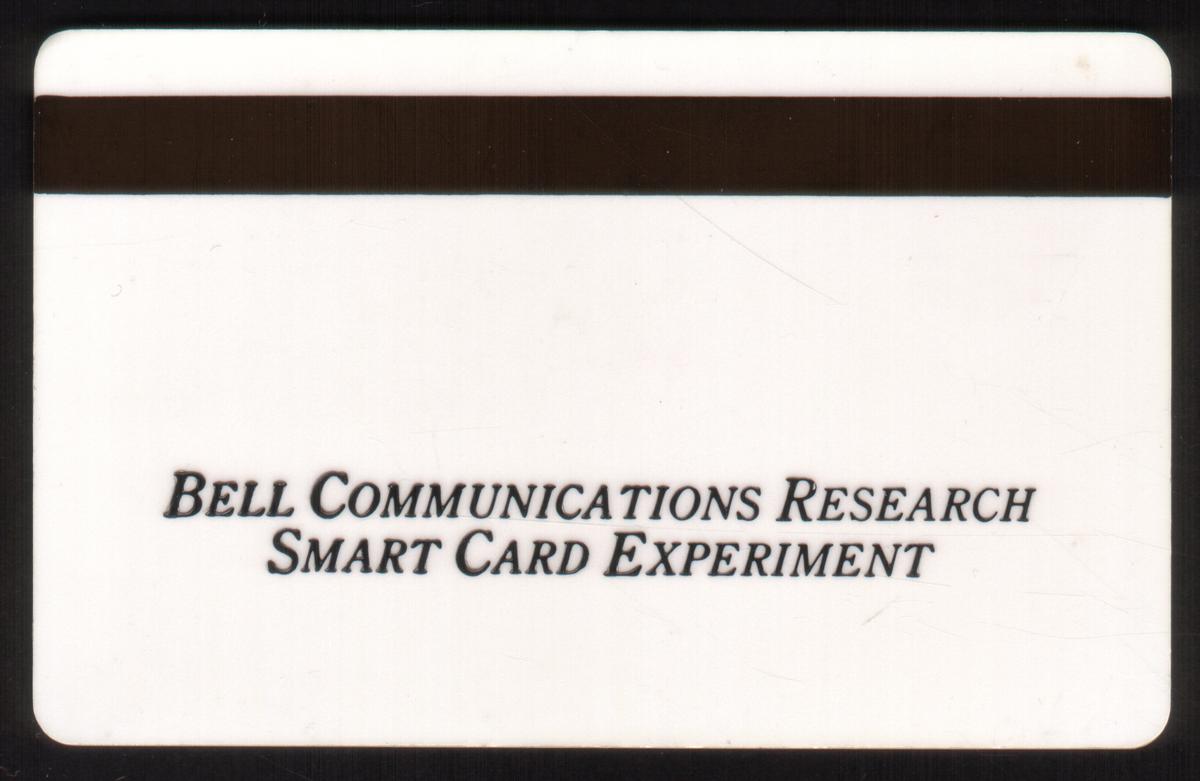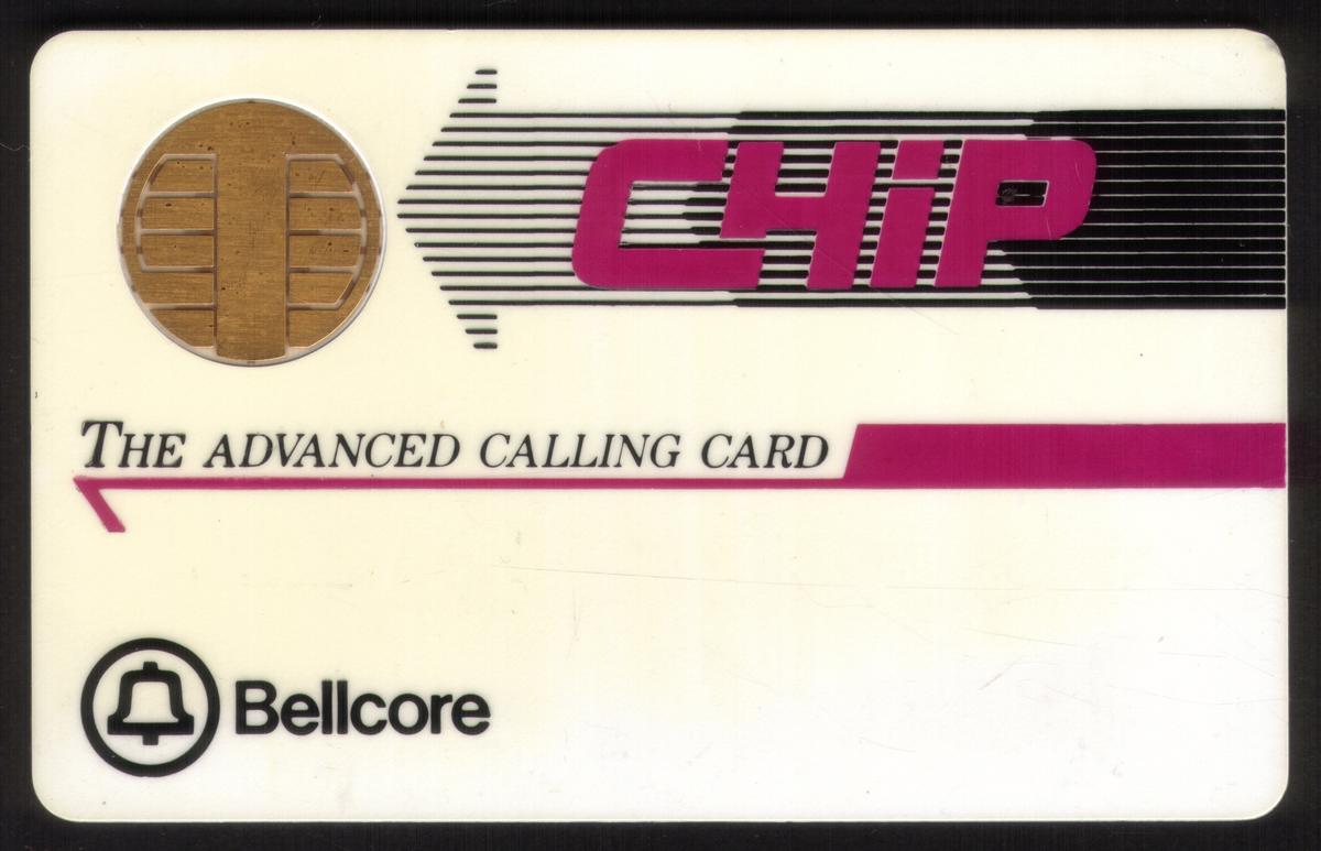 On the left side near the top, the card contains an embedded gold chip used for electronic transactions. This card is associated with Bellcore and BellSouth Telecom, reflecting its use in the Bell Communications Research Project. It is a trial card designed for advanced calling functions, making it a notable piece for collectors interested in telecommunications history.