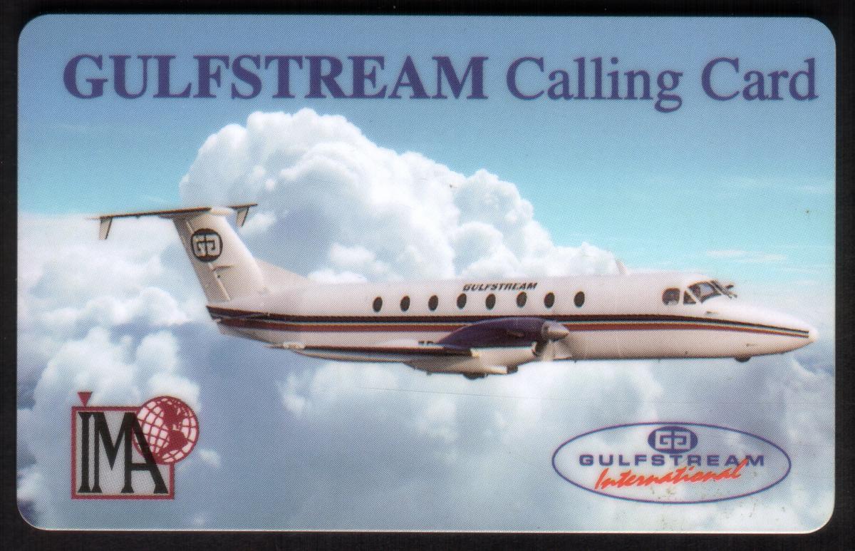 This phone card clearly relates to aviation, travel, and air transport services associated with Gulfstream International Airlines, produced by IMA (MCI Network). The design emphasizes the theme of aeronautics and executive aircraft, making it a specialized collectible for enthusiasts of Gulfstream planes and airline calling cards.