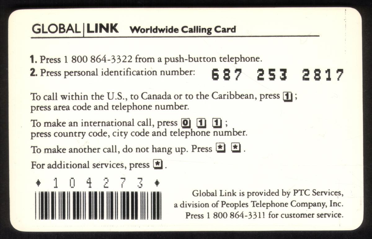 Keywords: telephone keypads, globes, world maps, earth, telelphone cords, telephones on phonecards, Paris, London, Sao Paulo, Tokyo, Buenos Aires, New York, global link worldwide calling card, PTC services, Peoples Telephone Co.