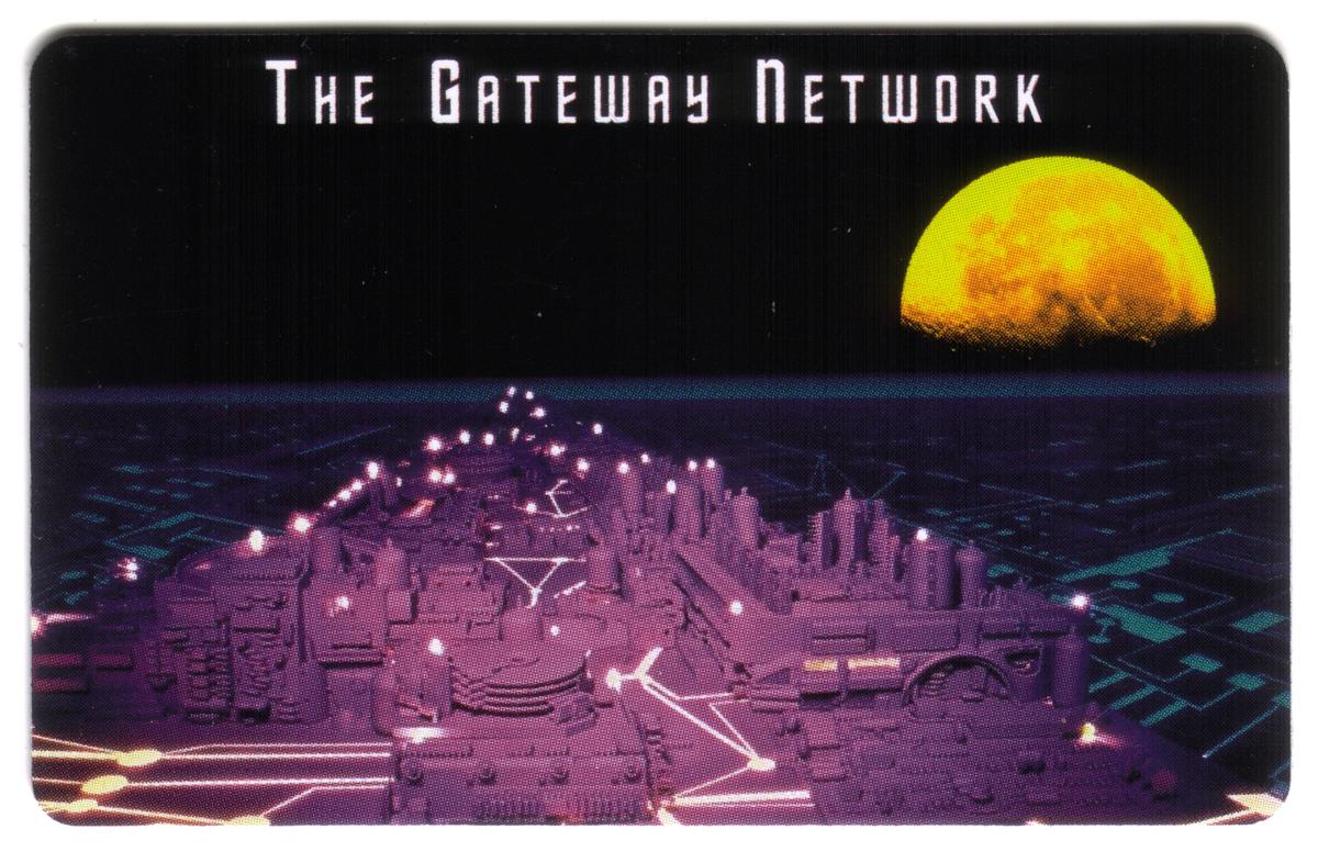 At the top right, the text “The Gateway Network” is prominently displayed in white, followed by the subtitle “Communications Gateway” beneath it. The card has a denomination of “100u” printed clearly on the lower left side, indicating its calling value. The brand “WorldCom” appears in the bottom center in a bold font, establishing the card’s issuer. The design integrates a modern and sleek aesthetic fitting for telecommunications.