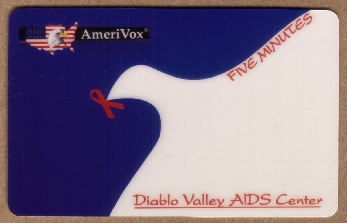 Overall, the design and text confirm the card’s role in raising awareness about AIDS and supporting the ongoing efforts of the Diablo Valley AIDS Center. The inclusion of AmeriVox highlights the company’s involvement in issuing this collectible phone card.