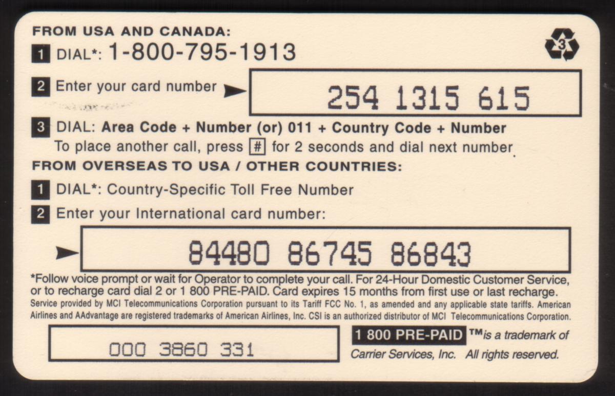 Since we have the world's largest inventory of USA phonecards for collectors, you will not necessarily receive the identical serial/batch/PIN number that we have scanned/pictured.