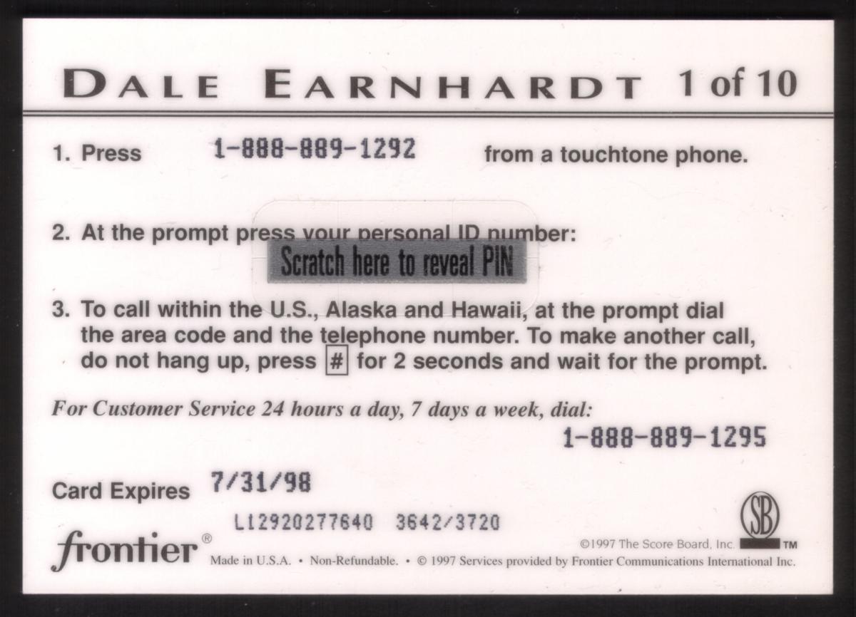 Since we have the world's largest inventory of USA phonecards for collectors, you will not necessarily receive the identical serial/batch/PIN number that we have scanned/pictured.