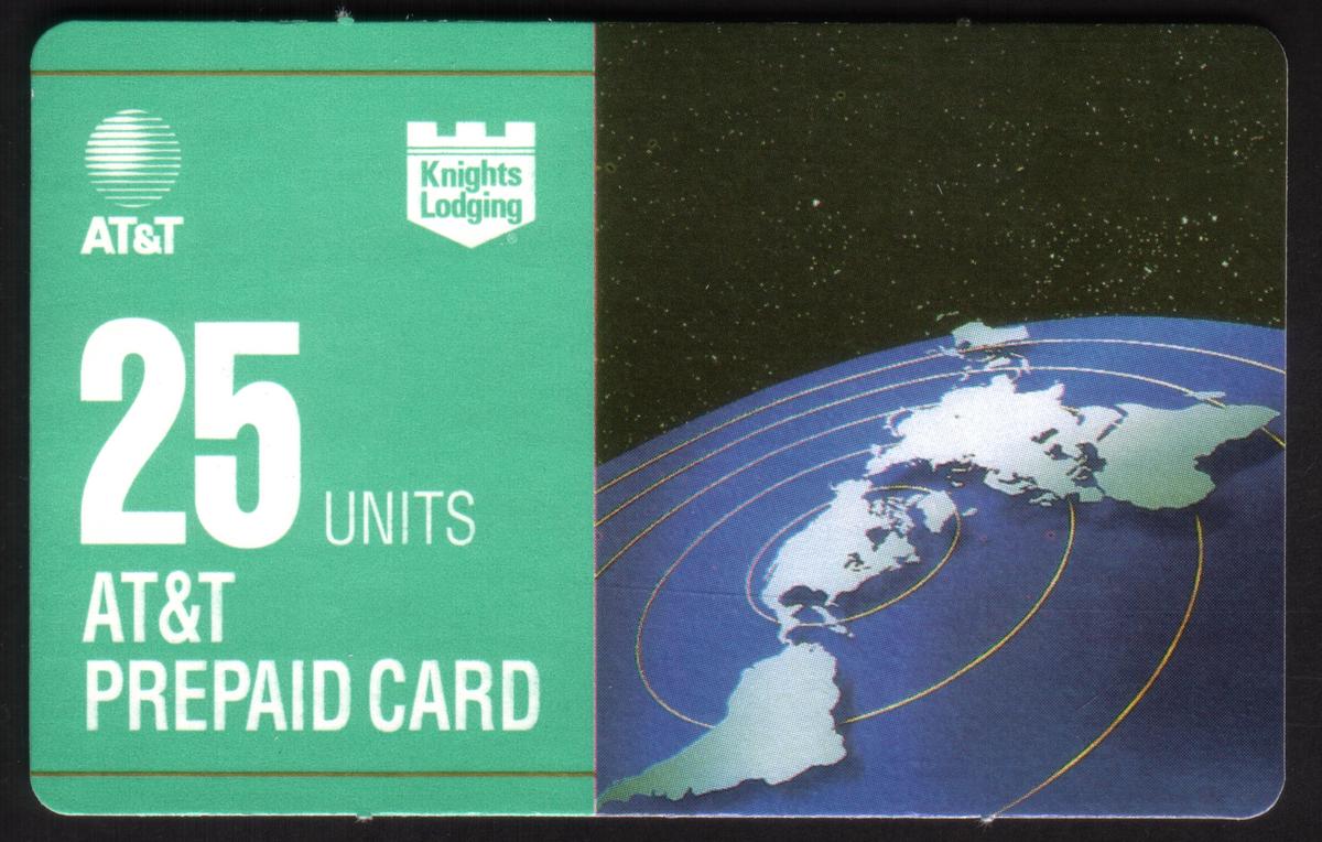 No other graphic elements, numeric details on helmets, or additional logos appear on the front. The card is a promotional specimen version related to prepaid service offered by AT&T and connected to Knights Lodging, designed for use in travel or hotel environments.