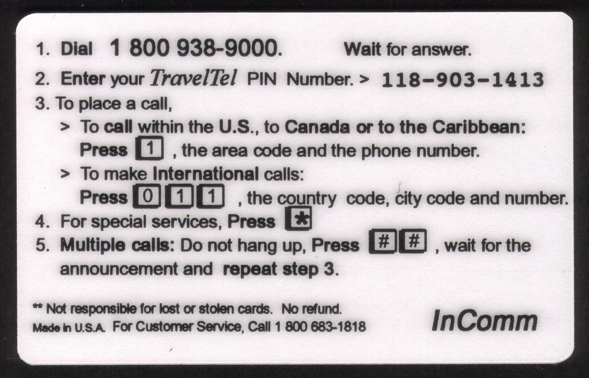 Since we have the world's largest inventory of USA phonecards for collectors, you will not necessarily receive the identical serial/batch/PIN number that we have scanned/pictured.
