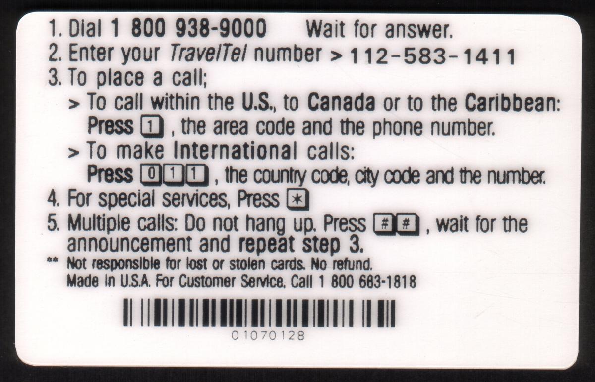 Since we have the world's largest inventory of USA phonecards for collectors, you will not necessarily receive the identical serial/batch/PIN number that we have scanned/pictured.