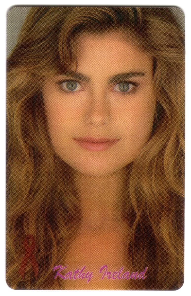 This collectible phone card features Kathy Ireland, a well-known actress and model, prominently pictured in the center. The card is designed to benefit Camp Heartland for Children with HIV/AIDS, highlighting a charitable cause connected to children affected by the disease. The design includes a clear portrait of Kathy Ireland, dressed elegantly with her signature blonde hair styled loosely around her shoulders.