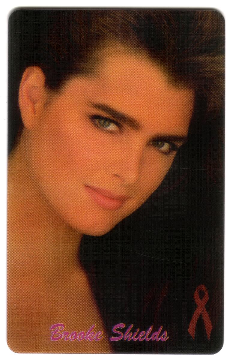This collectible phone card features an image of Brooke Shields, a well-known actress and celebrity, prominently displayed. The card is associated with a charitable cause, specifically benefitting Camp Heartland for children with HIV/AIDS. The design includes text indicating its purpose "To Benefit Children With HIV/AIDS" along with the name Brooke Shields, underscoring the card’s connection to this philanthropic effort.