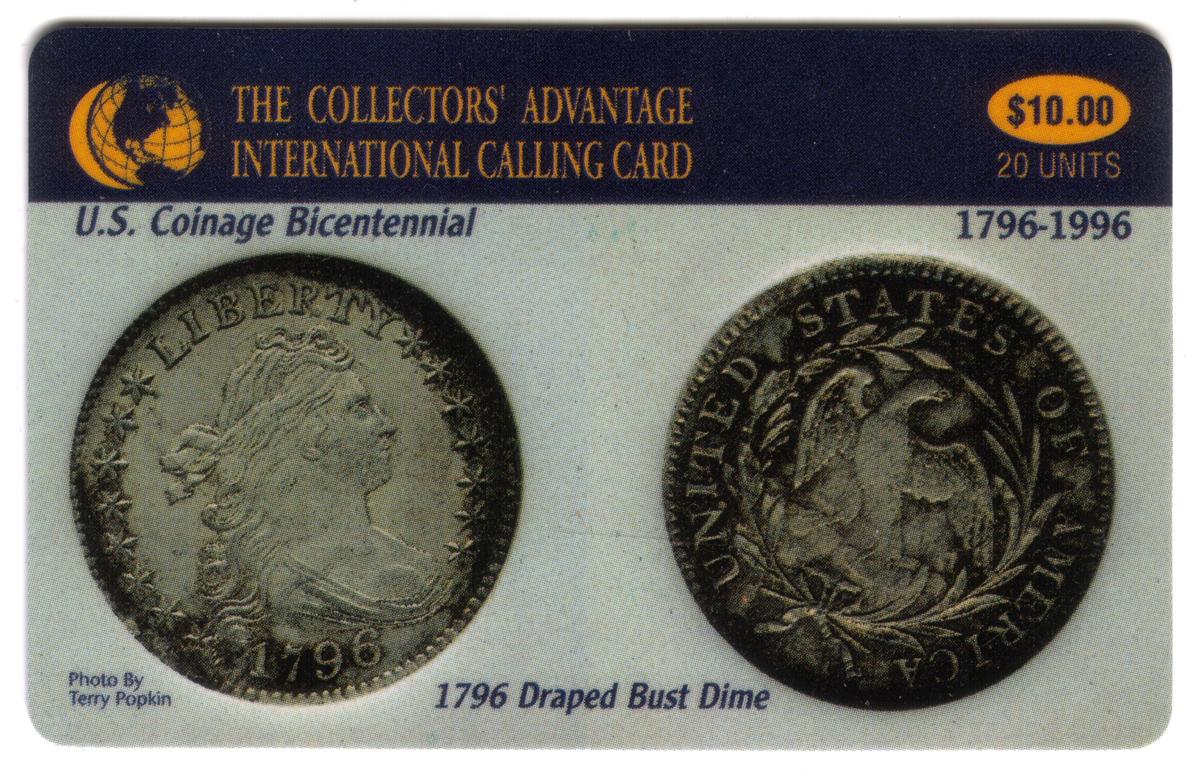 $10. 1796 Draped Bust Dime Coin Card (Coinage Bicenten) (3/95) USED