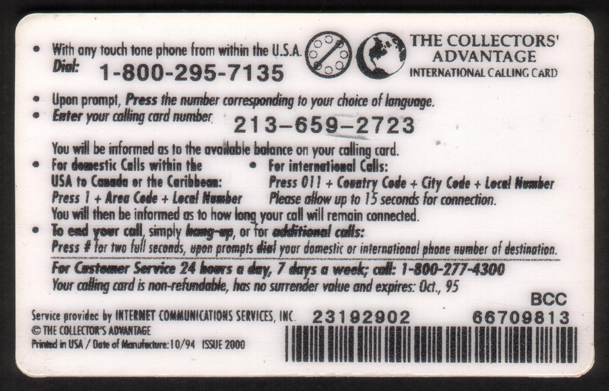 Since we have the world's largest inventory of USA phonecards for collectors, you will not necessarily receive the identical serial/batch/PIN number that we have scanned/pictured.