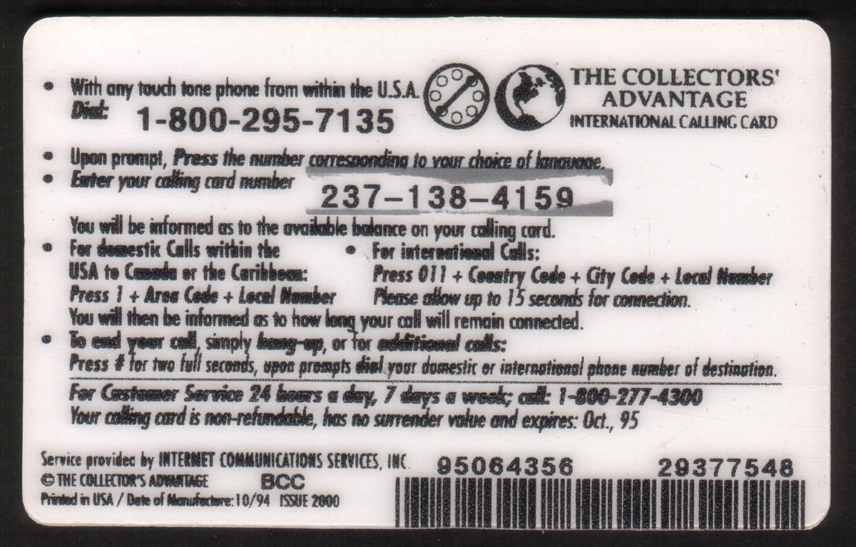 Since we have the world's largest inventory of USA phonecards for collectors, you will not necessarily receive the identical serial/batch/PIN number that we have scanned/pictured.