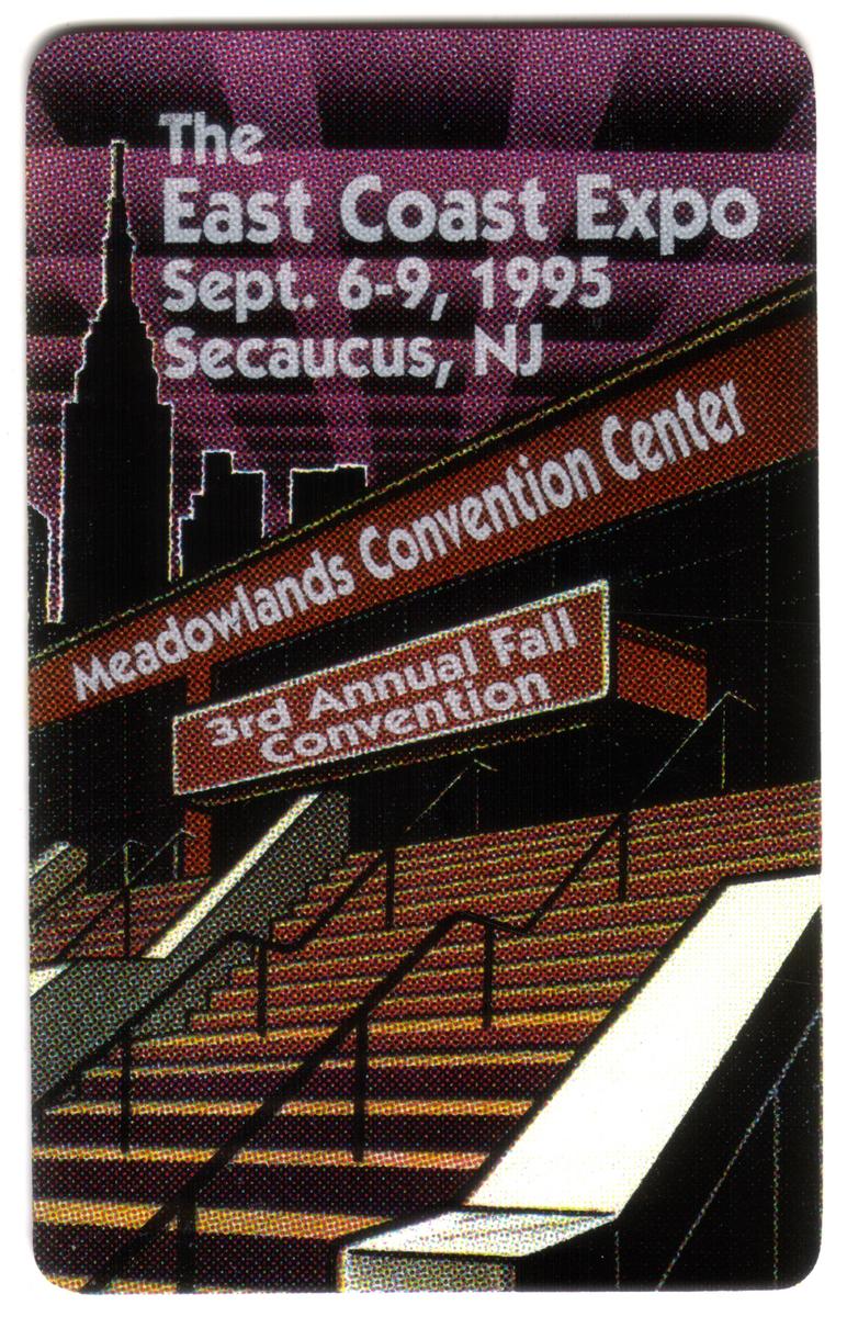 This collectible phone card commemorates the 3rd Annual East Coast Expo Fall Convention held from September 6 to 9, 1995, at the Meadowlands Convention Center in Secaucus, New Jersey. The card prominently features artwork related to the event, with the text "Telecard Events," "East Coast Expo," and the location and date details clearly printed. The face value of the card is $1. The design incorporates an artistic representation that aligns with promotional material for the Expo, emphasizing its nature as a special event collectible.