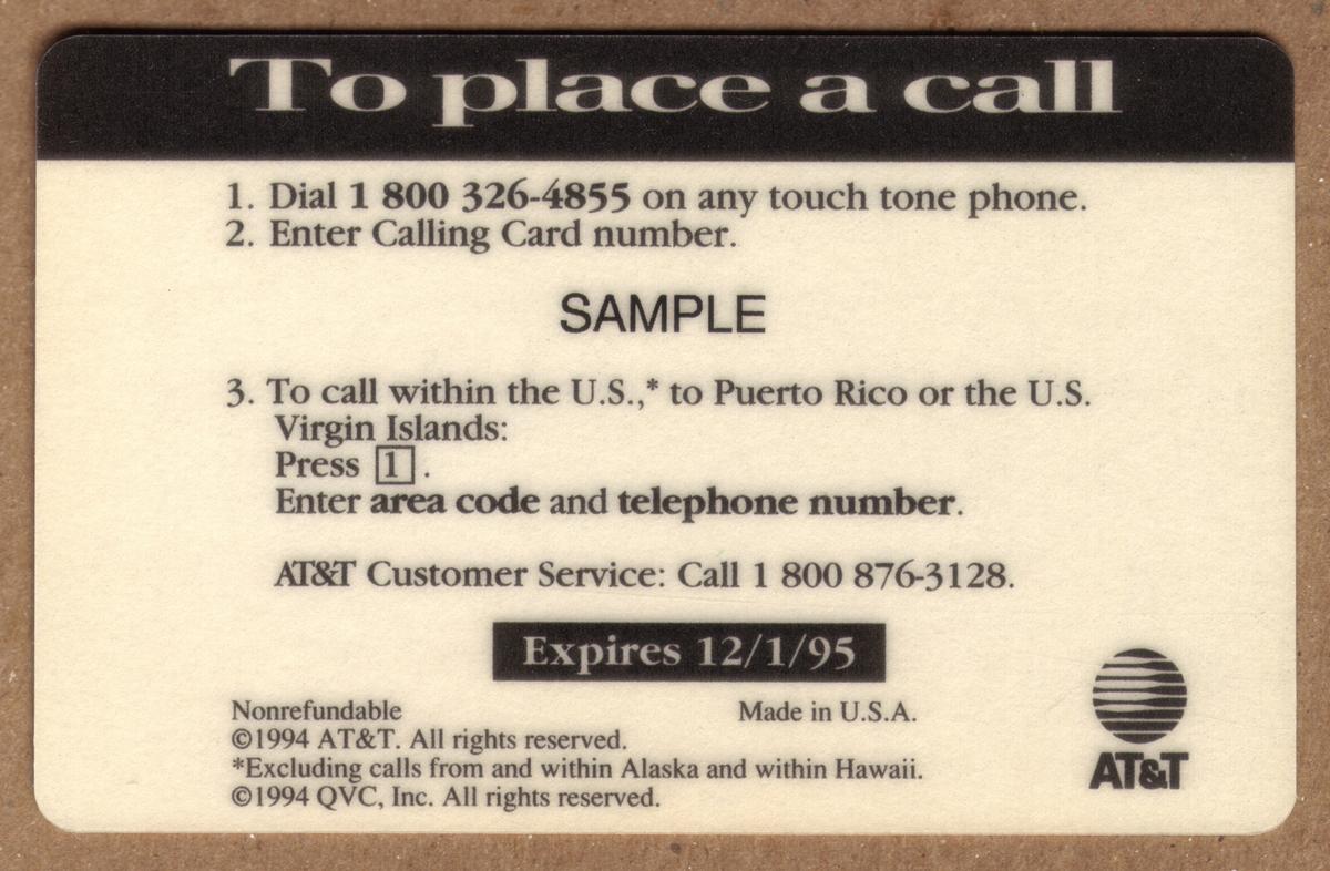 A subtle AT&T logo appears in the upper right corner of the card, indicating the telecom provider associated with this item. This card is identified as SKU-27485 and is a promotional collectible tied to television home shopping through QVC. The card is a “SAMPLE” edition, as noted in the keywords.