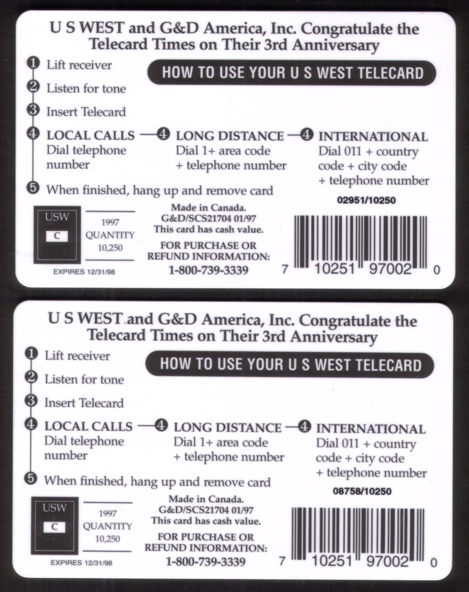 Since we have the world's largest inventory of USA phonecards for collectors, you will not necessarily receive the identical serial/batch/PIN number that we have scanned/pictured.