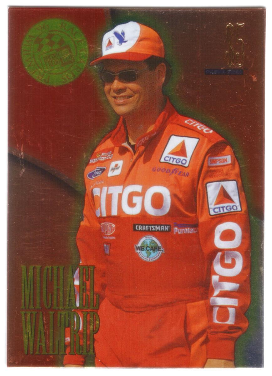This 1996 Press Pass Racing NASCAR card highlights Michael Waltrip’s association with Citgo during his racing career and is a $5 Prime Time collectible. It is part of the premium racing cards series featuring automotive and NASCAR themes.