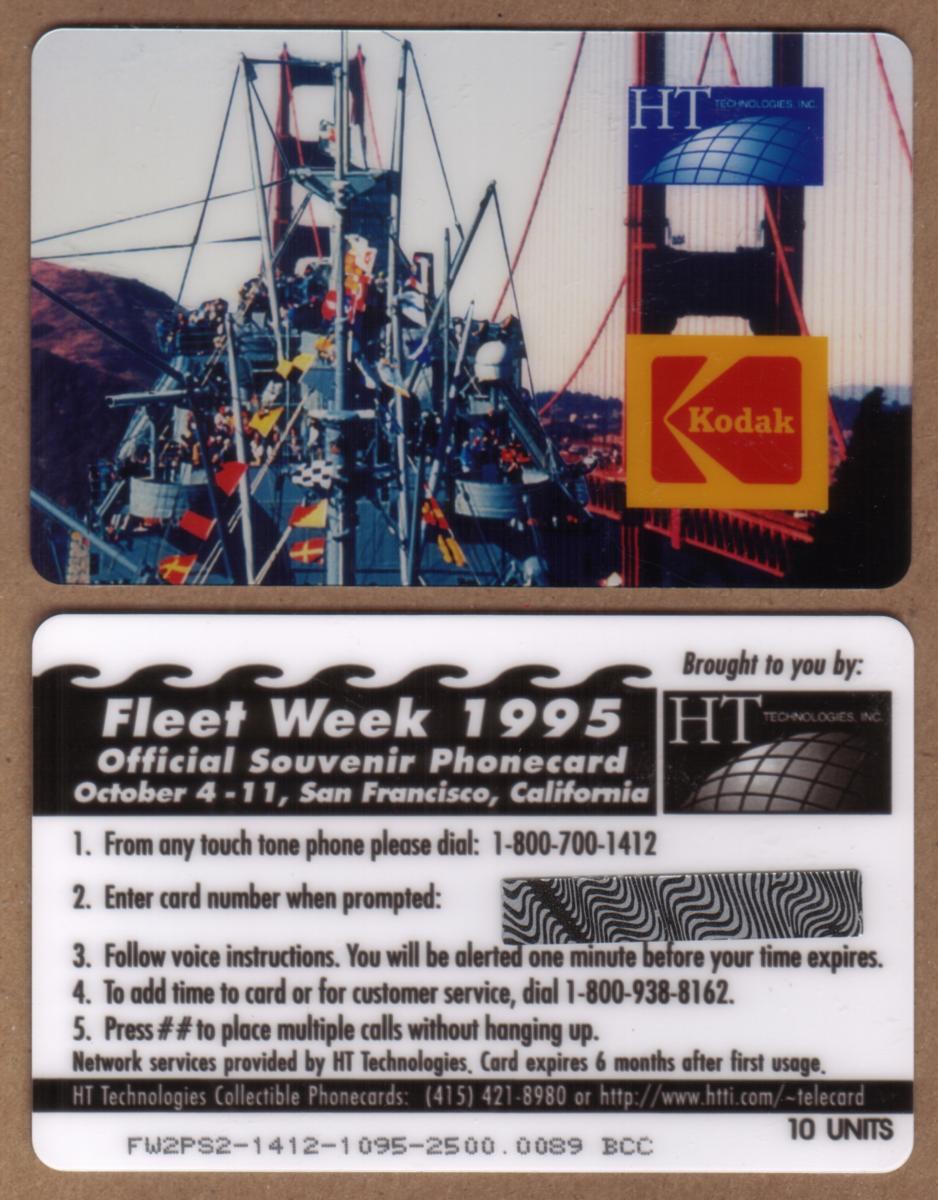 Displayed in the upper right area of the card are two logos. The first logo reads "HT Technologies, Inc." with a globe graphic indicating a technology or communications company. Below it is the bright yellow and red Kodak logo, signifying the involvement of the Kodak brand. Both logos are positioned over the image but do not obscure key elements.
